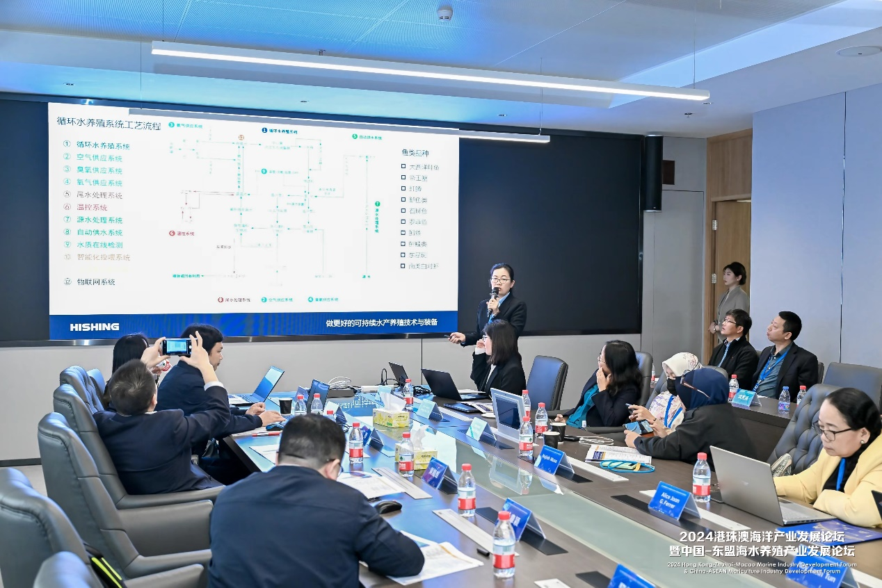 技術(shù)總監(jiān)劉俊花女士在中國-東盟魚類養(yǎng)殖可持續(xù)發(fā)展合作論壇做《工業(yè)化水產(chǎn)養(yǎng)殖裝備及應(yīng)用》主題報告。
